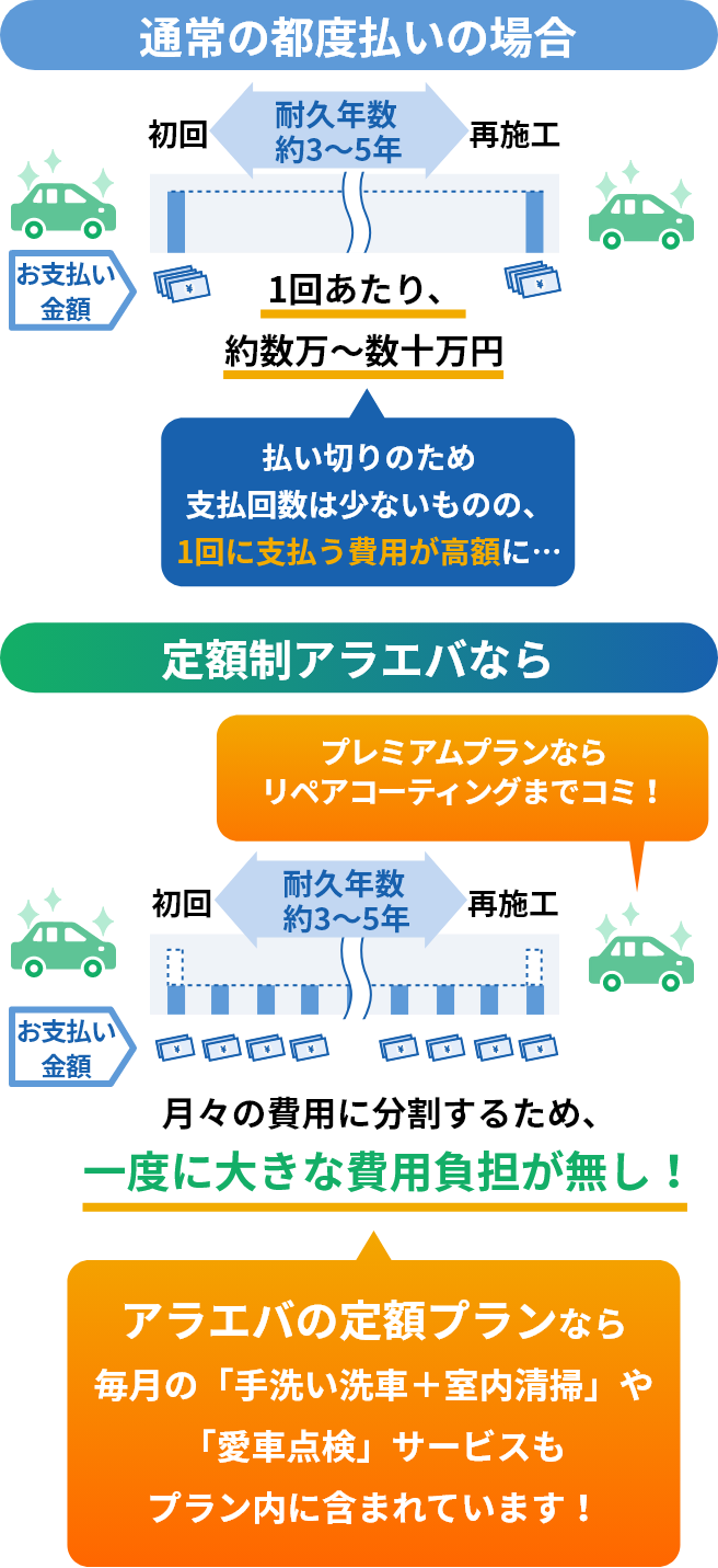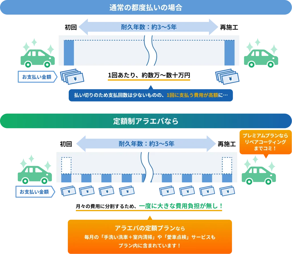 月々の定額払いで「カーコーティング」を身近にご利用いただきながら、